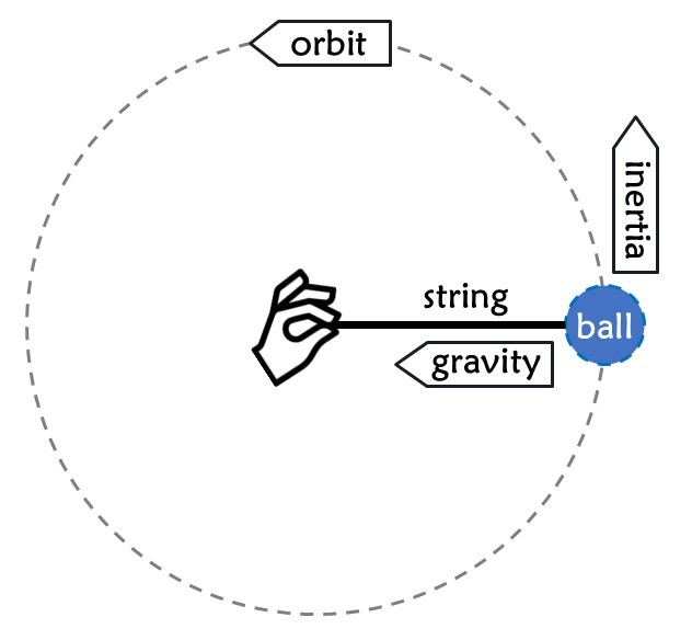 - You cut the string (ball keeps moving straight – like a planet without gravity)