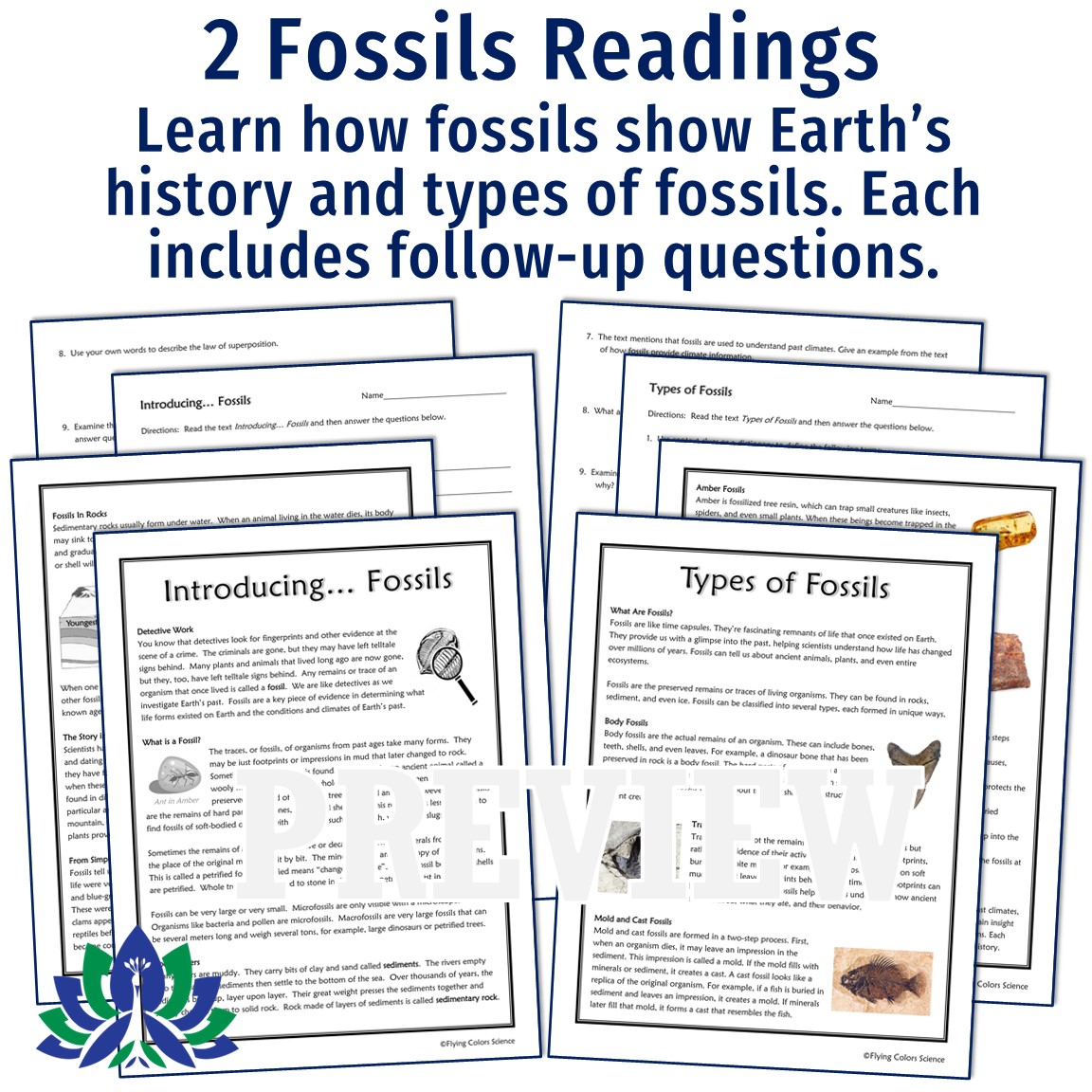 - Fossil Readings (2)*: Replaces a textbook! Students learn about what fossils are, types of fossils, and how they give us information about the past.