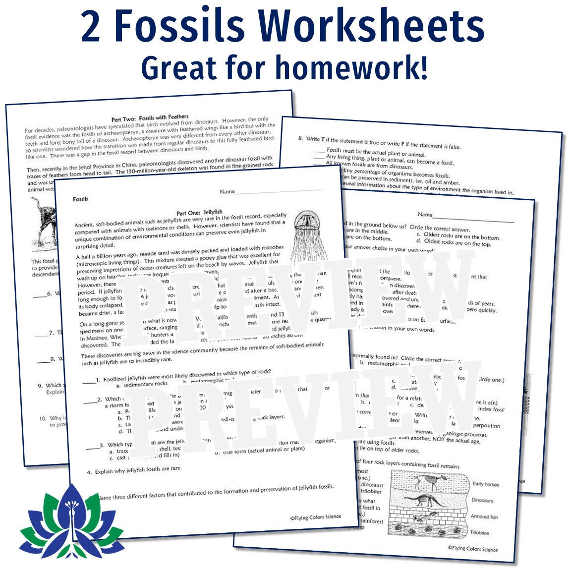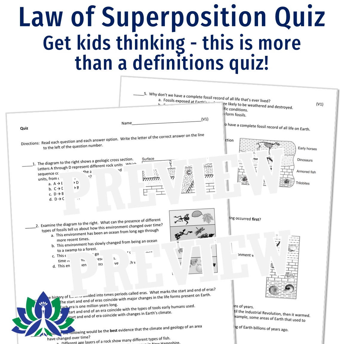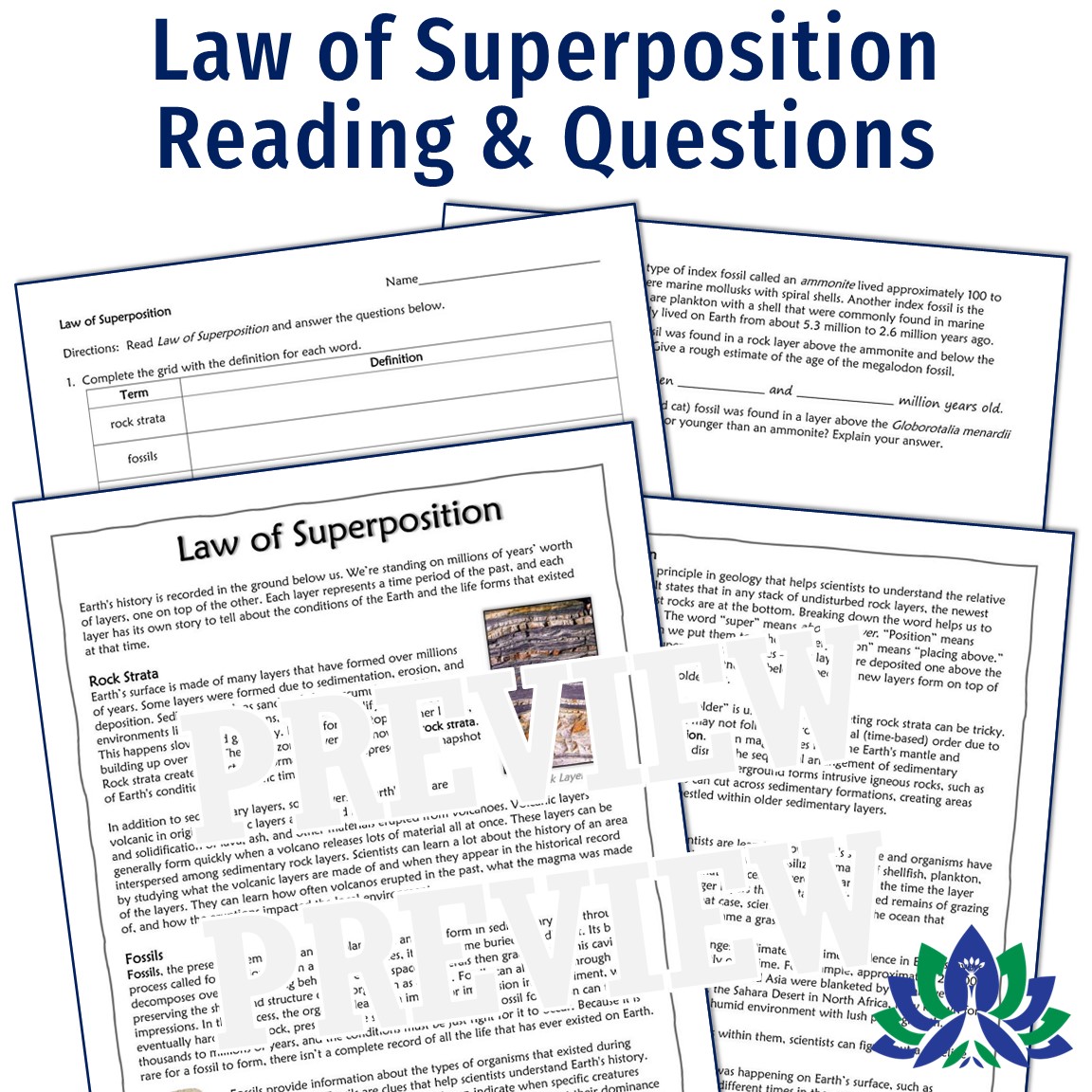 - Fossils and Law of Superposition Worksheets (3)*: These rigorous worksheets provide extra practice and are great as homework.