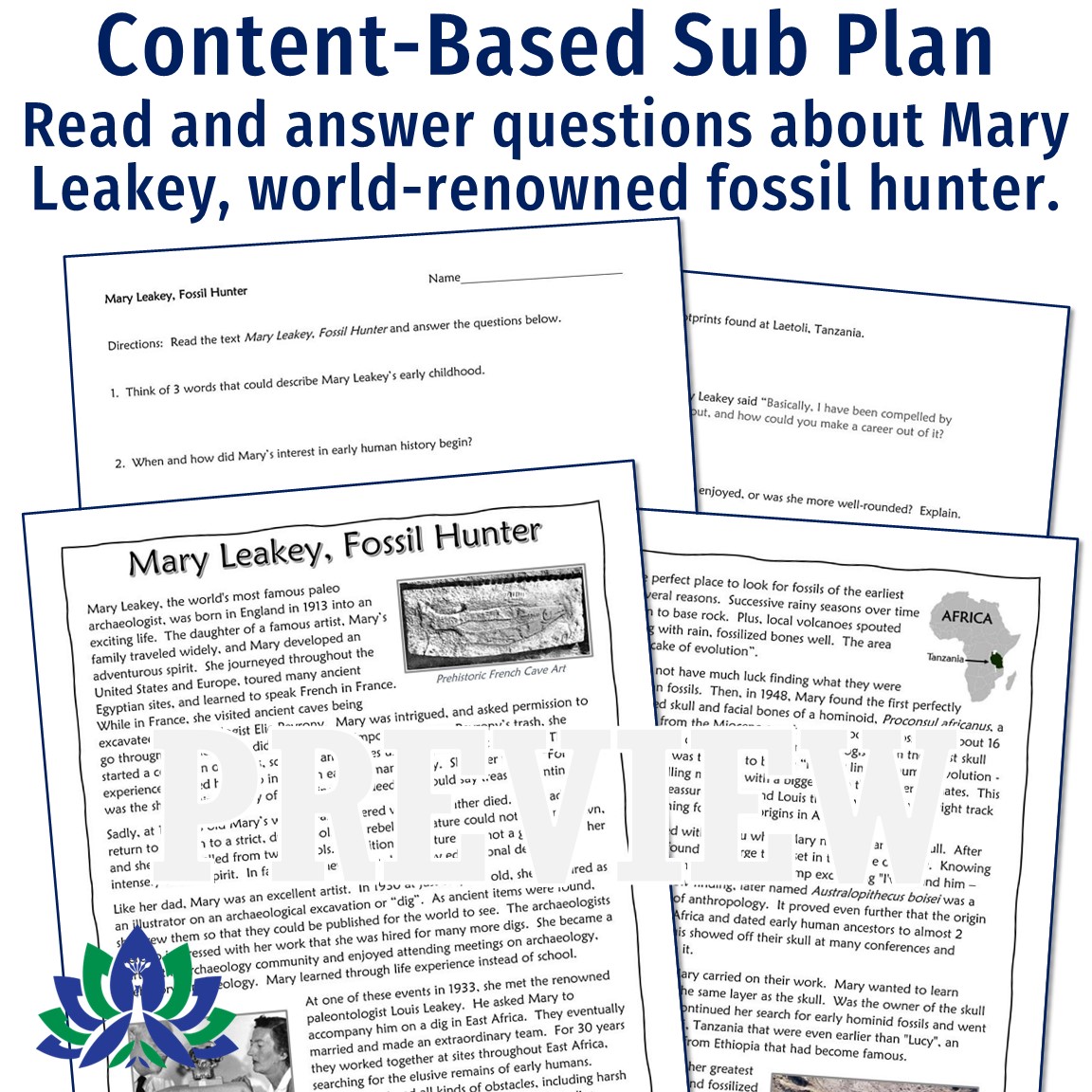 - Grab-And-Go Sub Plan*: Stay on topic even during your absence with a content-based sub plan in your back pocket! Students read about Mary Leakey, one of the most famous female scientists, world-renowned fossil hunter, and the finder of some of the most important early human fossils.