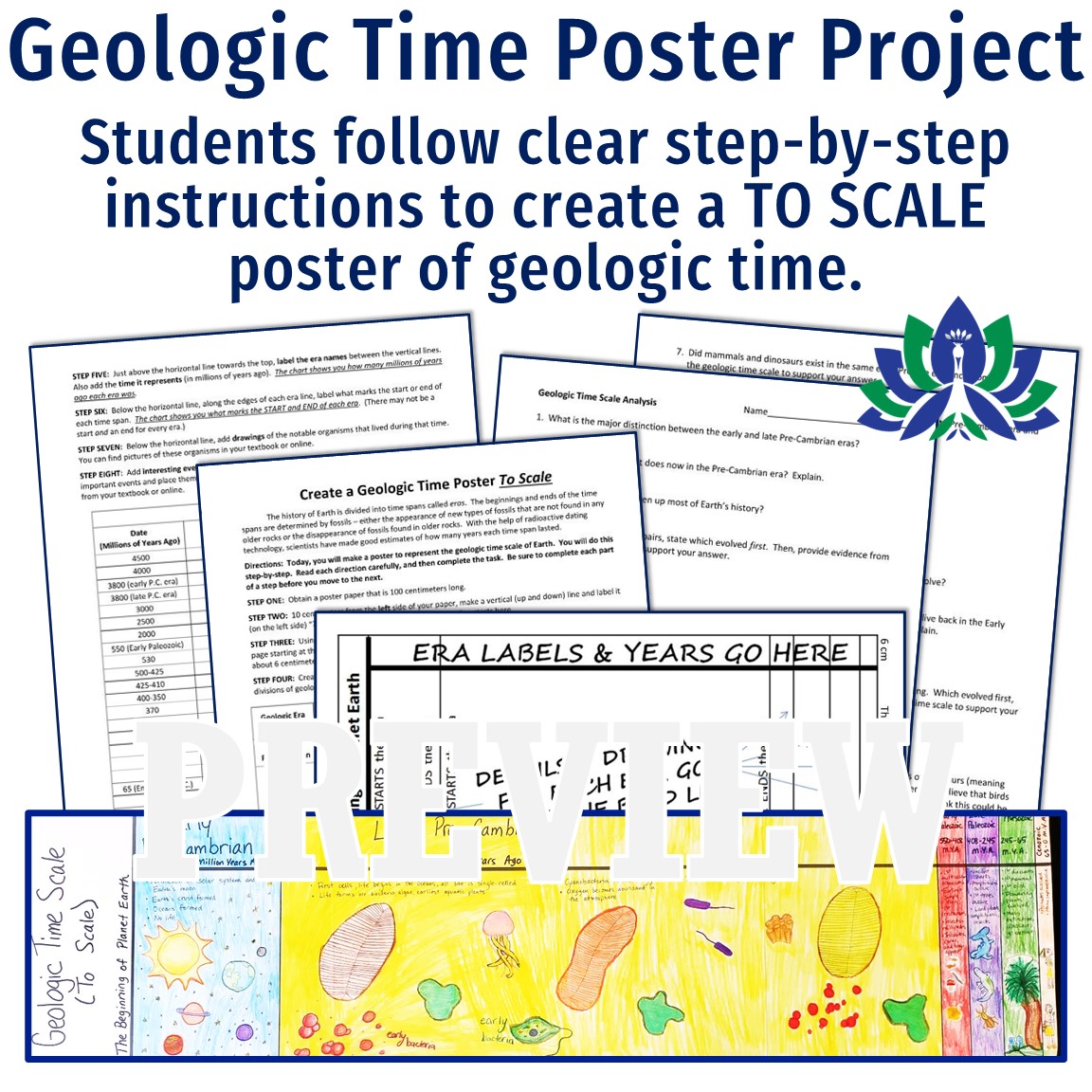 - Geologic Time Poster Project: Students create a TO SCALE 1-meter long geologic time poster of Earth’s History of Life! Then, using their project as a reference, they complete a worksheet with analysis questions.
