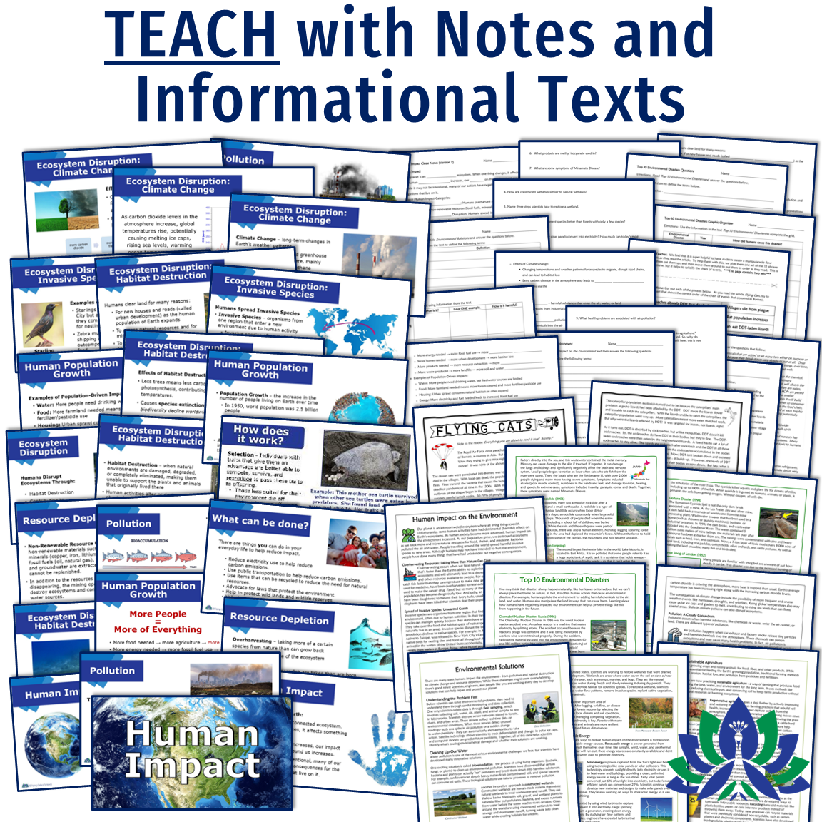 $100.33 Save 50% OFF list prices list prices and get EVERYTHING YOU NEED to teach a FUN, RIGOROUS, and INTERACTIVE human impact unit! Cover all the major topics related to how humans impact Earth’s systems – resource depletion, ecosystem disruption, climate change, pollution, and more. Most importantly, also cover SOLUTIONS to these problems!