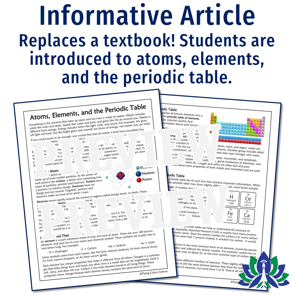 This atoms, elements, and the periodic table reading introduces students to these concepts in an accessible way. Perfect to start NGSS MS-PS1-1!