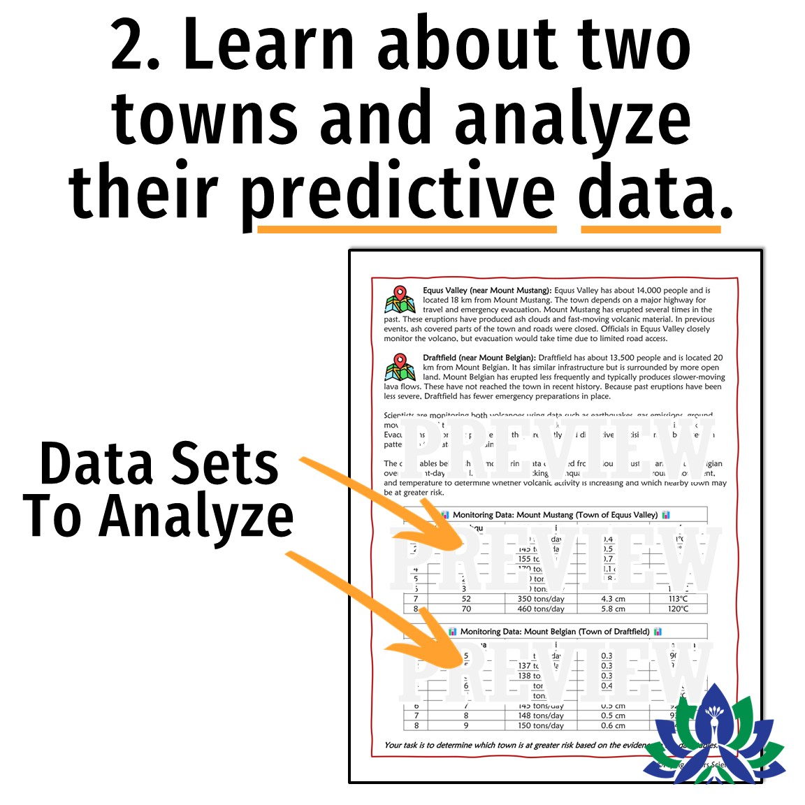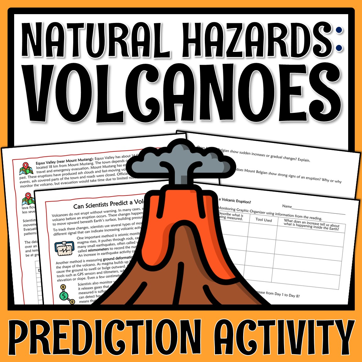 In this monitoring and predicting volcanoes activity, students analyze data to figure out whether scientists can predict a volcanic eruption and which fictional nearby town is at greater risk.