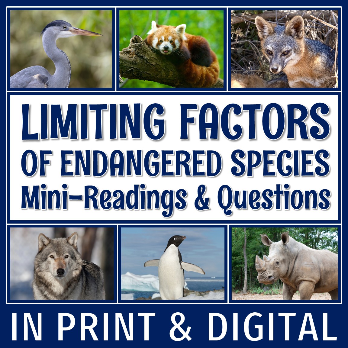 In this limiting factors activity, students read about threatened and endangered species to analyze the limiting factors of their populations.