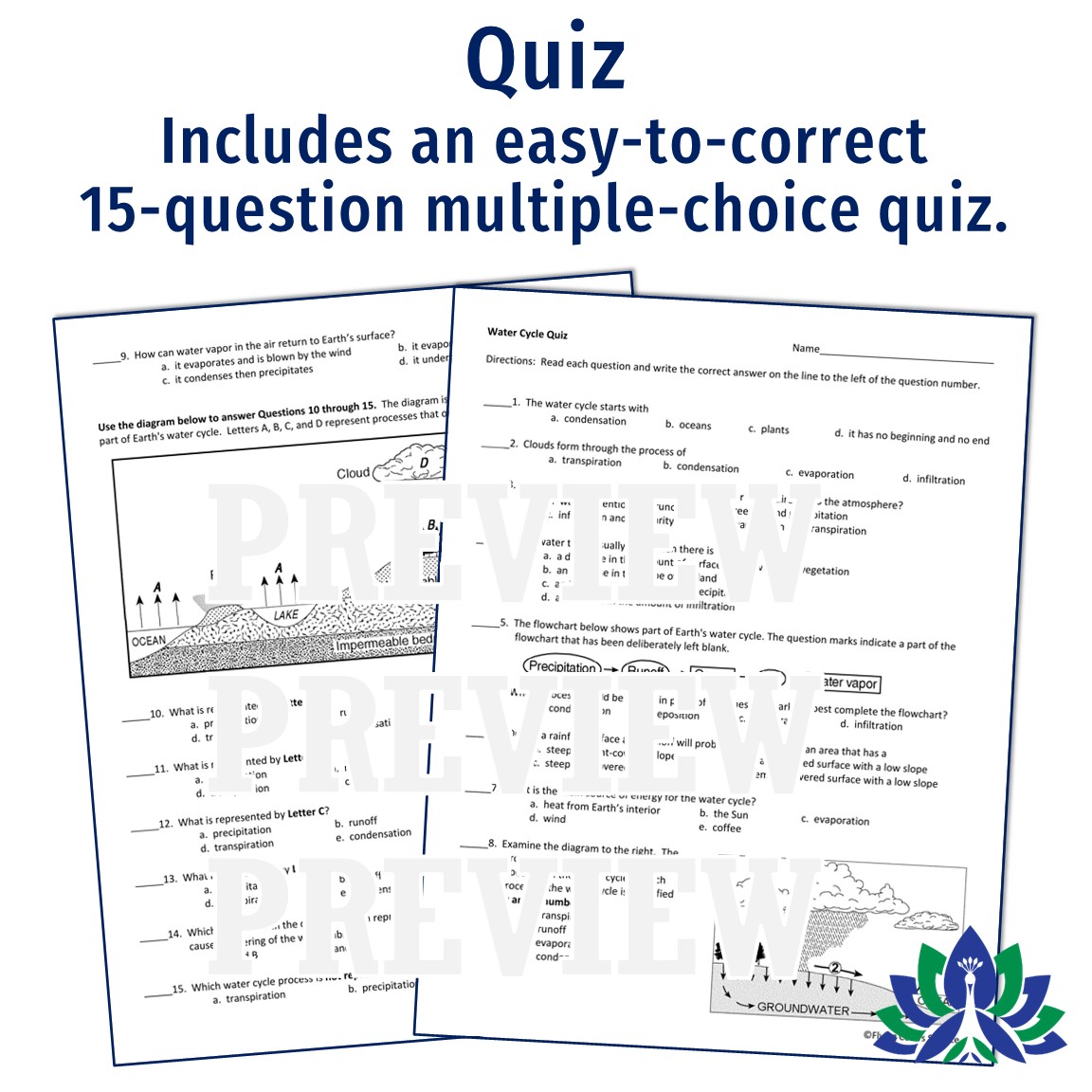 Get a comprehensive water cycle notes presentation and a corresponding water cycle quiz for NGSS MS-ESS2-4: Develop a model to describe the cycling of water through Earth’s systems driven by energy from the sun and the force of gravity.